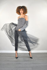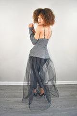 Get ready for the weekend party with this must-have Checked Cold-Shoulder Jumpsuit. Featuring a checked print detailing, cold-shoulder style, an adjustable spaghetti straps, square neckline and a tulle skirt for added flair. Made from high-quality material, it is soft and very comfortable. Team it up with sky high heels and gold-tone accessories for all eyes on you.